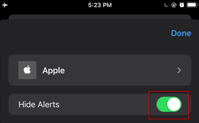 Step 2. Tap on the i or Detail button at the top right corner of the screen > Toggle off the switch next to Hide Alerts. This will remove the crescent moon icon from the left of the messages.