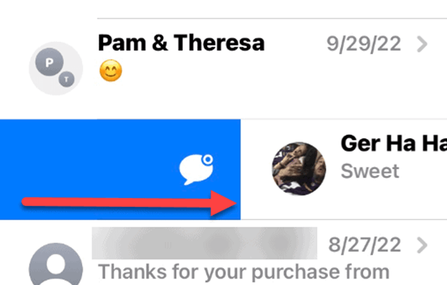 You can also mark a message as unread by swiping right on a conversation. If you swipe it all the way, it will automatically be marked as unread. If you swipe it only part way, release it, and then tap the Mark as Unread button that appears on the left.