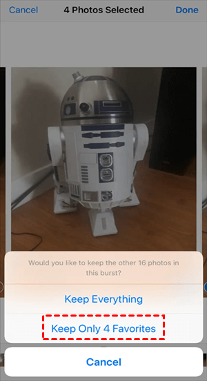 Step 4: Select either Keep Everything to maintain the entire burst cluster or Keep Only * Favorites to safeguard only the chosen favorites.