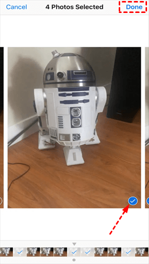 Step 3: Choose the specific photos you want to retain from the series by tapping each picture > Tap the empty circle in the lower-right corner > Conclude the selection by tapping Done.