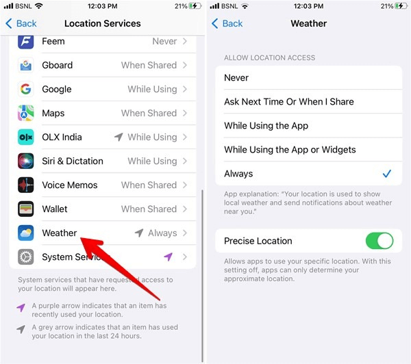 If you find that the weather widget has disappeared from your lock screen, then you can check the Location Services or launch the Weather app to grant it access to your location.