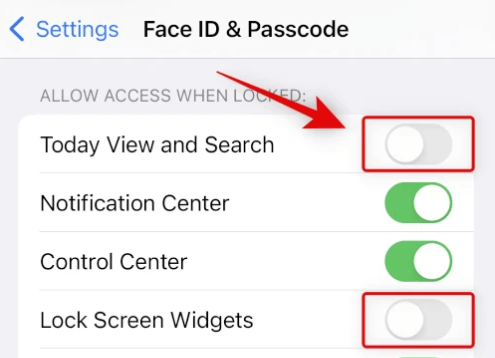 Step 1. Go to the Settings app on your iPhone > Click on Face ID & Passcode (or Touch ID & Passcode on older devices) > Enter your passcode to confirm your identity > Find and turn off the Today View and Lock Screen Widgets options.
