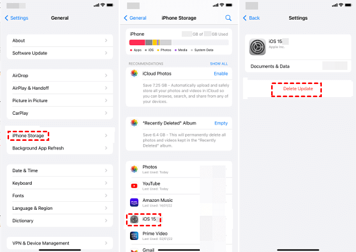 Sometimes the problem is with the update file that was downloaded during the software update procedure. This might be a corrupted update file or an incompatible model that is causing the iOS 26 beta software failed to download. A simple option is to delete the update file from the iPhone and re-install the software update.