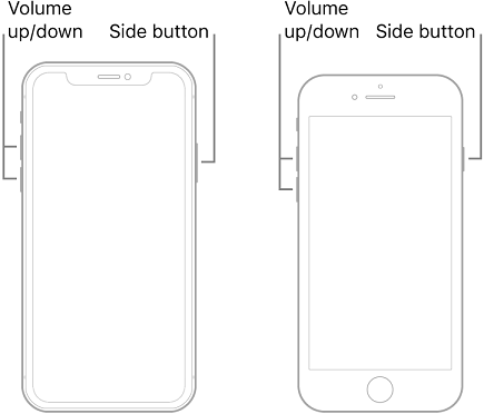 • For iPhone XR and later: Quickly press and release the Volume Up button > Quickly press and release the Volume Down button > Press and hold the Side button. When the Apple logo appears, release the button.