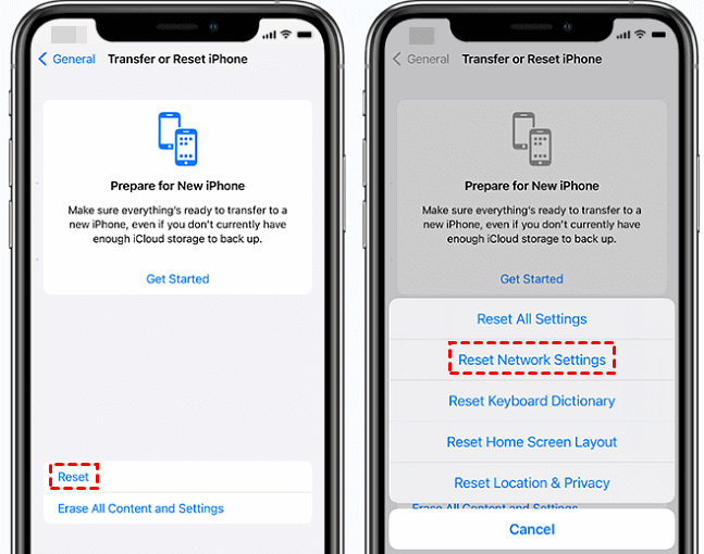 Go to iPhone Settings app > General > Transfer or Reset iPhone > Reset > Reset Network Settings. When prompted, enter your passcode to confirm your operation.