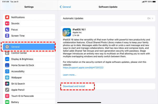 Step 2: Select Download and Install to acquire the latest iOS version if an update is available