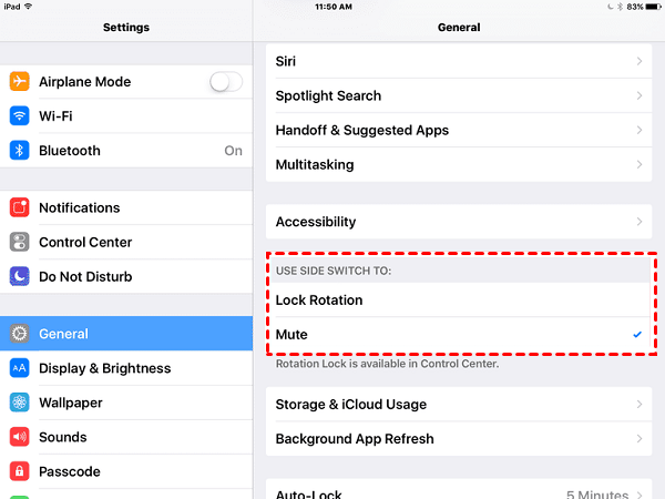 There is a physical side switch above the volume up and down buttons. If the iPad screen not rotating, you can just toggle the side switch. Alternatively, set the side switch by following these steps.