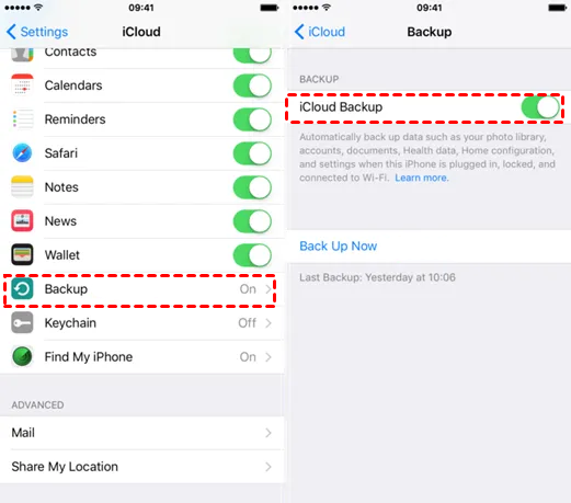 The first way is to use iCloud to back up your iPhone data. But notice that iCloud only provides 5 GB of free storage to save your files, and the iCloud sync very slow. If you don’t mind this limitation, you can follow the below steps to back up iPhone with iCloud.