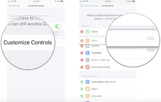 Another useful method to resolve the iPhone stuck on Control Center is to consider resetting the Control Center items to fix their default settings. Some items on the Control Center itself that could be preventing it from swiping up or down. So, follow these steps to check the items: