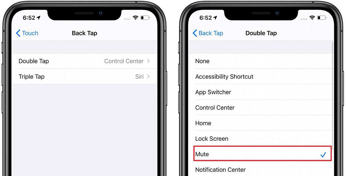 Step 2. Open Back Tap > Go to Double Tap or Triple Tap and remove the Mute action.