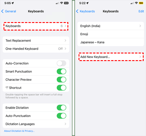 Step 1: Navigate to Settings > General > Keyboard on your iPhone > Select Keyboards and confirm if your desired Dictation language is added.