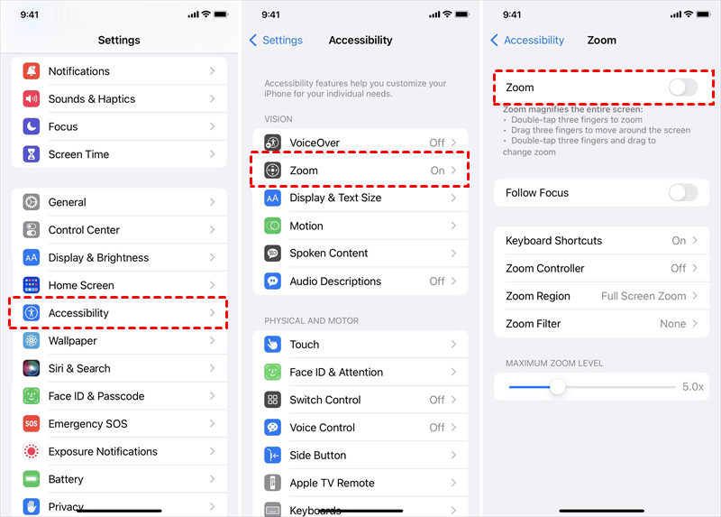 Fix 2. Turn off the Zoom Feature via iPhone Settings