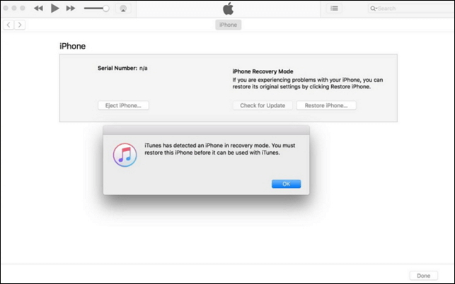 If successful, your iPhone screen will be black, and iTunes will display a pop-up window indicating it has detected your device.