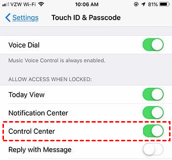 Similar to the previous case, if your iPhone is locked, iPhone Control Center will not slide up. Then you can disable Control Center to perform on a locked iPhone screen. Here's how to get Accese processing to work on your iPhone: