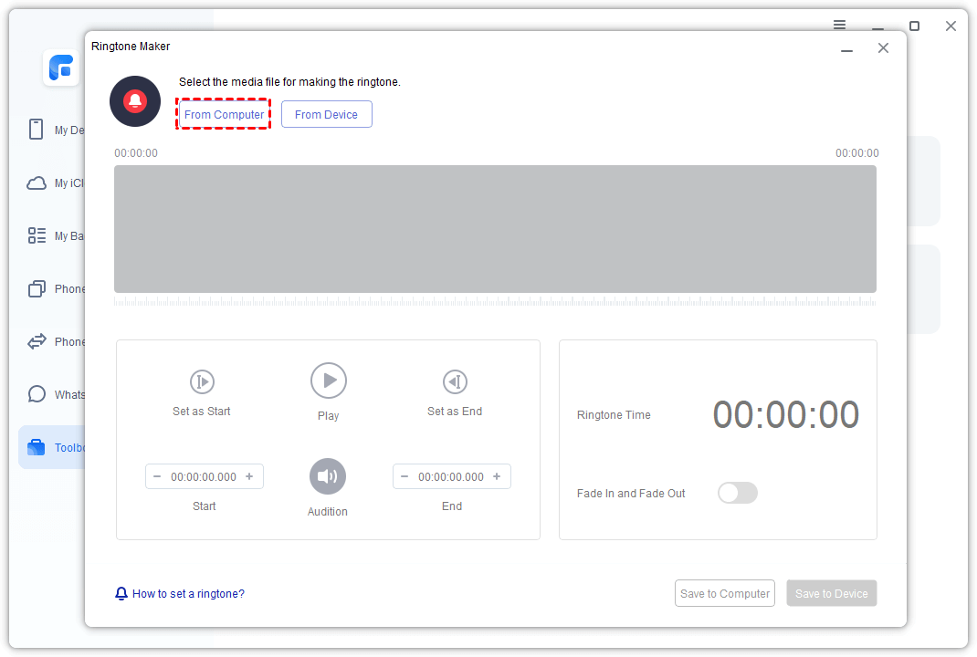 FoneTool is a professional ringtone editor and converter tool. With it, you can edit your audio on your PC. And then it will automatically convert the ringtone format to the m4r format. When you choose to save the ringtone to your device, it can directly transfer the audio file to the ringtone settings on the iPhone. These simple steps are a great way to save you time!