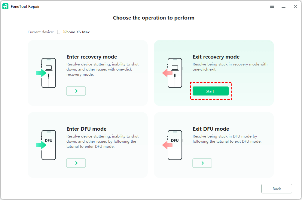 Connect your iPhone to the computer > Download and launch FoneTool Repair > Go to Toolbox > Choose iOS System Repair > Go to Recovery Mode and choose Exit Recovery Mode to make it right now!