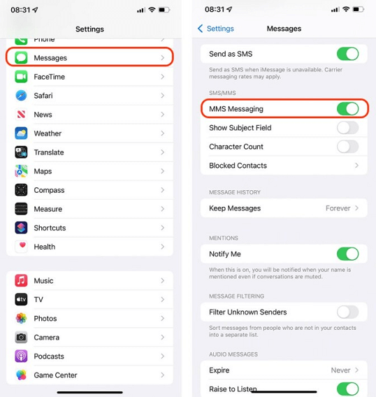 MMS (Multimedia Messaging Service) allows sending photos in messages. If it is disabled, this could block iMessage photo downloads in iOS 26. Check your MMS settings to avoid pictures not downloading in iMessages iOS 26.
