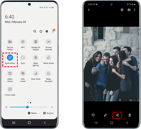 Step 1: Activate Quick Share on both your Samsung devices > Simply access the Notification panel, swipe down, and locate Quick Share for file sharing.
