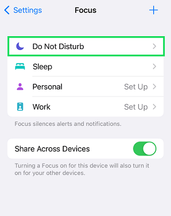 Step 1. Go to the Settings app on iPhone > Tap Focus > Choose Do Not Disturb.