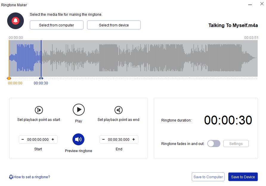 Step 3. Then edit the music as you like > Once you have finished the process, tap on Save to Computer or Save to Device to save it.