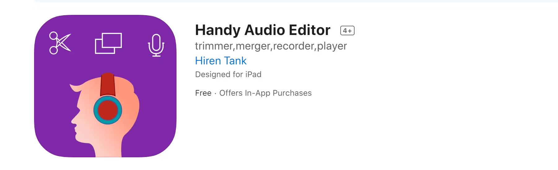 Handy Audio Editor is a convenient and smooth-running tool that allows you to merge and trim several audio files and edit them in a variety of ways. It includes numerous mp3 editing capabilities and is a popular choice for audio editing apps for iPhones and other iOS devices.