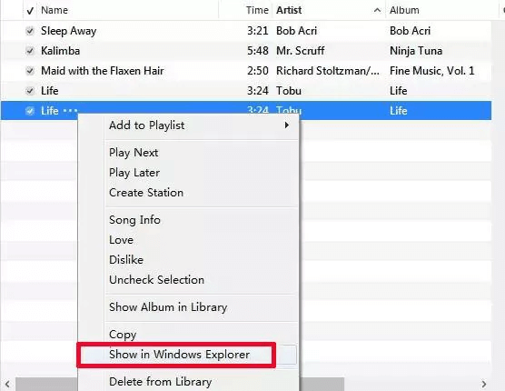 Step 4. Click on "Show in Windows Explorer" for the music track. Rename the file by changing the extension from .m4a to .m4r.
