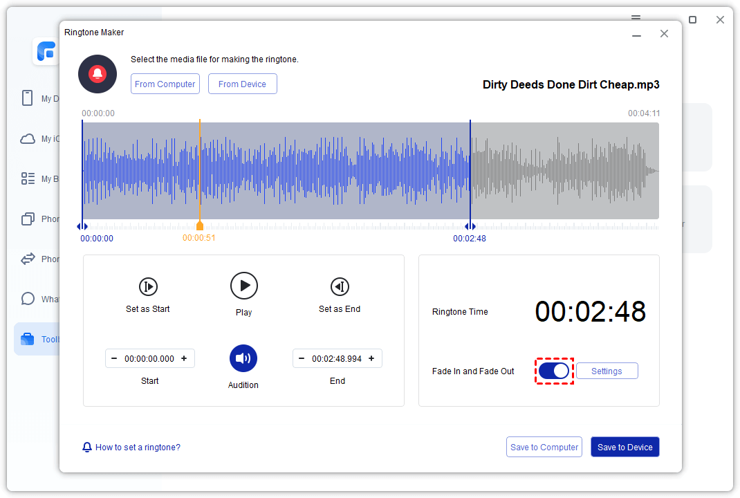 Step 2. Select From Computer or From Device to choose your M4R file.