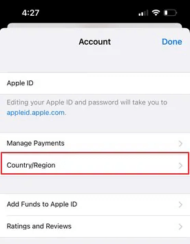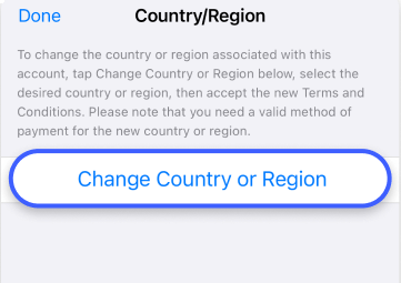 Step 3. Tap Change Country or Region and select the new country from the list > Tap Agree to agree to the terms and conditions.