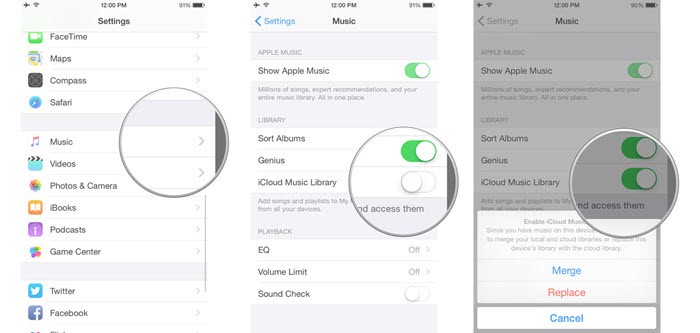To troubleshoot the issue, you can simply turn off the Show Apple Music and iCloud Music Library and turn them on after some time. It can help refresh the services if the error result from some small glitches. Here are the steps on how you can turn off and on them.