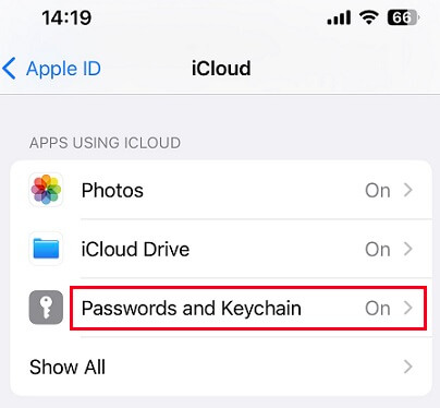 Step 1. Go to the Settings app > Tap [your name] > Click iCloud > Tap Passwords and Keychain.