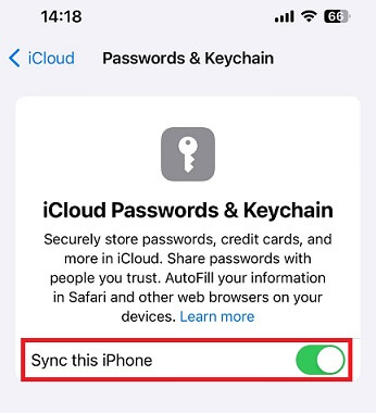 Step 2. Enable the Sync this iPhone/iPad toggle to enable Keychain and sync your iPhone/iPad data to iCloud.