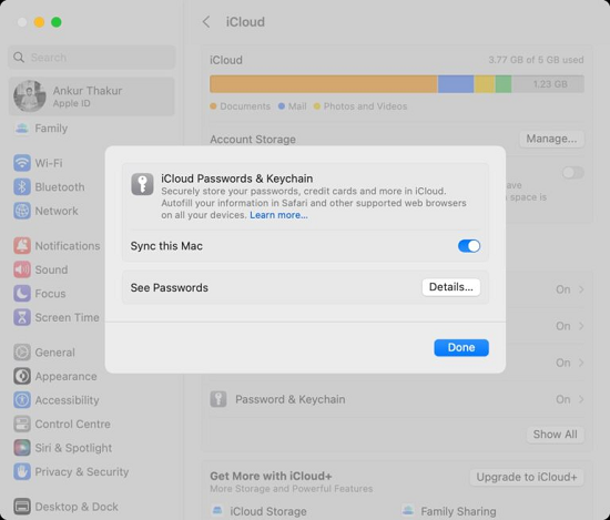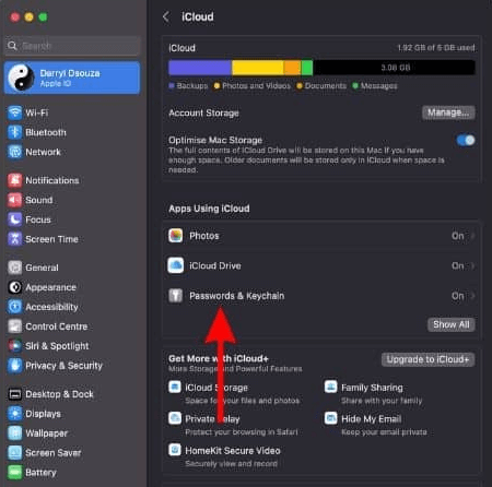 Step 1. Go to the System Settings on your Mac > Click your name at the top of the sidebar > Choose iCloud > Go to Passwords & Keychain.