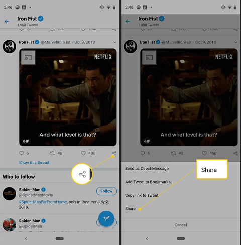 Step 2. Tap the share icon and tap Share.