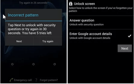 If you’re using Android 4.4 or an older version on your tablet and want to remove the screen lock, you need the Google account username and password linked to the device. Once you have these credentials, follow the steps below to unlock your Android tablet without a factory reset: