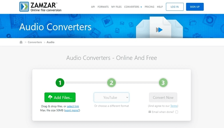 Zamzar is another reliable online video to ringtone converter. It supports a wide range of file formats and offers quick conversion. Here are steps you can follow to convert a video to a ringtone using Zamzar.