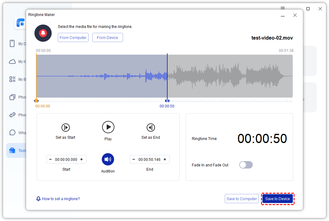 You can access this online video to ringtone converter on iPhone or computer. If you’d like to complete the conversion on computer, you can transfer ringtone from PC to iPhone using FoneTool.