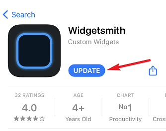 Open the App Store on your iPhone > Tap your profile icon at the top of the screen > Scroll down to see if there is an update available for Widgetsmith. If there is, tap Update.