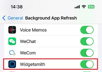 To check whether Background App Refresh is enabled, go to Settings > General > Tap Background App Refresh. Make sure Widgetsmith is toggled on.