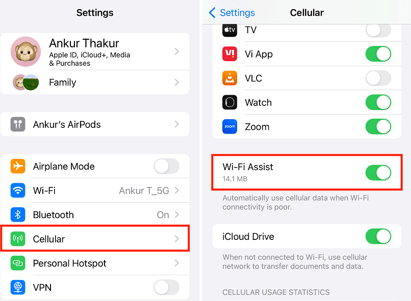 Wi-Fi Assist is a handy iOS feature designed to maintain a stable internet connection during activities like browsing and streaming. When enabled, Wi-Fi Assist will seamlessly switch to Cellular Data when it detects a weak or unstable Wi-Fi connection.