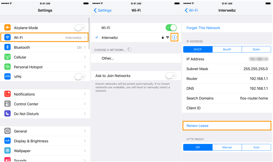 If the IP address assigned by the router has expired, you can update the IP address to fix the issue. Open the Settings app on your iPhone > Navigate to the WiFi section > Tap on the small "i" icon located next to your WiFi network's name > Look for the DHCP option > Simply tap on Renew Lease and you're done.