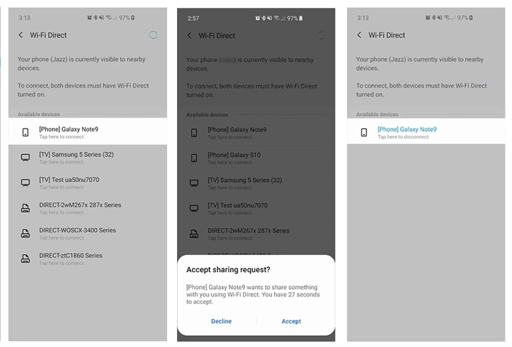 Step 2. Wait for Wi-Fi Direct to scan for other devices > Select the other device you would like to connect to.