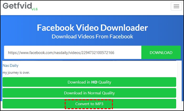 Using a free converter, you can easily convert Facebook video to MP3 online without installing any software on your computer. Here take Getfvid as an example to convert from Facebook video to MP3.