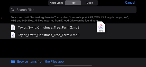 • Tap Project icon > Choose Loop icon > Select Files > Browse to locate your ringtone > Long-press to import.