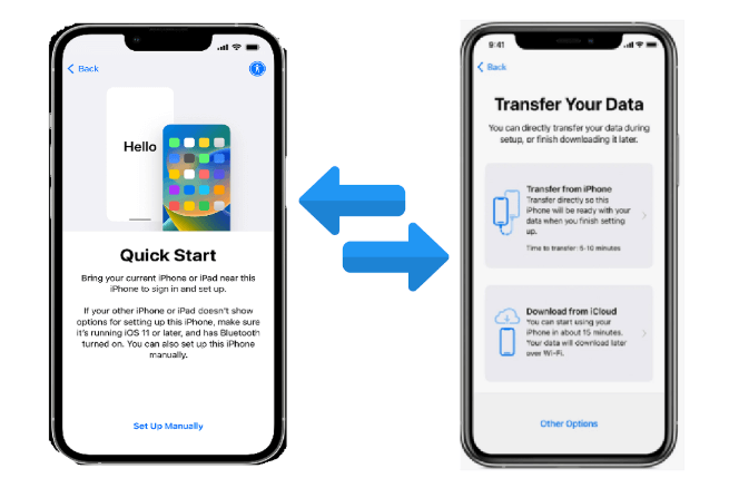 When using Quick Start or similar methods to transfer data, you can reduce the transfer time by following some of the tips below.