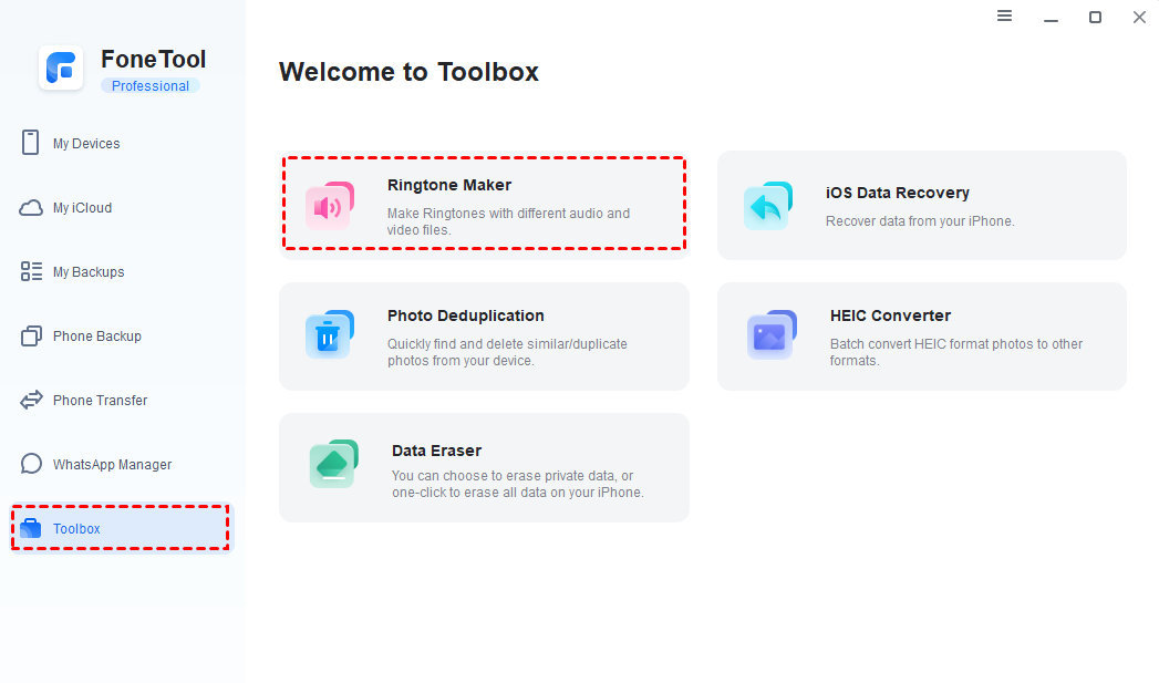 Step 1. Launch FoneTool and navigate to the Ringtone option under the Toolbox.