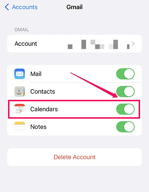 Step 3. Toggle the switch next to "Contacts" to enable contact syncing. You can also enable calendar syncing by toggling the switch next to "Calendars."