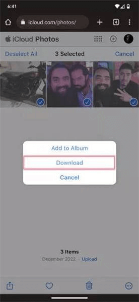 Sep 3. Select the Photos option > Choose the videos you’d like to save to Android phone > Tap the three-dot menu icon > Click Download from the pop-up to confirm.
