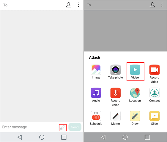 Step 2. Click the Attach, namely a clip-shape icon and choose Video from this menu.