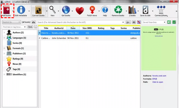 Step 1: Launch Calibre and select Add books from the top menu to import your ePub files. (Alternatively, drag and drop your ePub books directly into the main Calibre interface.)