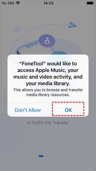 Step 2. Click OK to allow it to access Photos, Contacts, Apple Music and media library.
